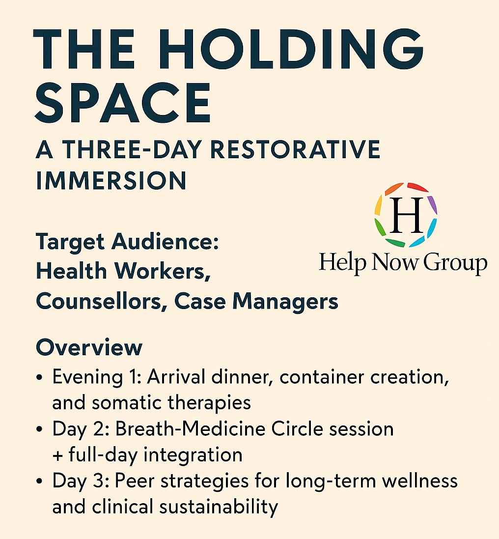 Day Two: Guided Breath-Medicine Breathwork Circle, peer supervision integration, and practical self-care strategies.